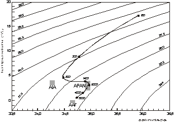 pode-se detectar a Água Antártica de Fundo (AAF),
