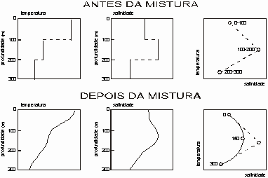 de temperatura e salinidade em função da profundidade