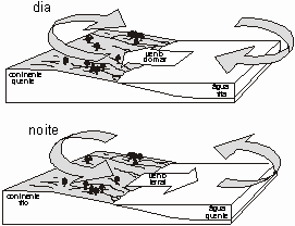 do mar, que origina uma brisa do continente em sua direção.