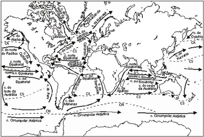 e das grandes correntes oceânicas no planeta.