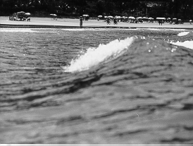 em repouso à sua frente; uma nova onda se forma no